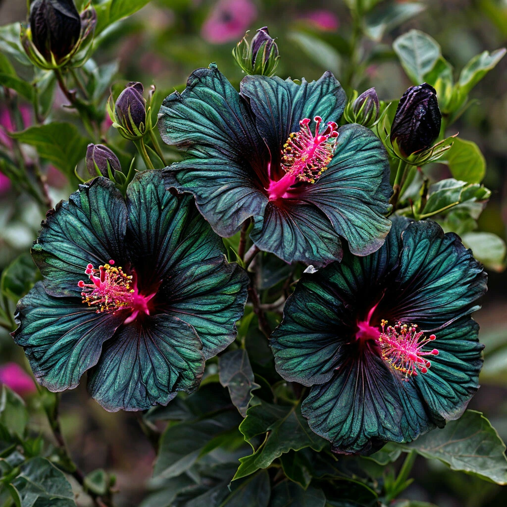 - Другие характеристики: Гибискус «Пикок Плюм» — относительно неприхотливое растение, устойчивое к основным болезням и вредителям при правильном уходе. Он предпочитает солнечные места с плодородной и хорошо дренированной почвой.